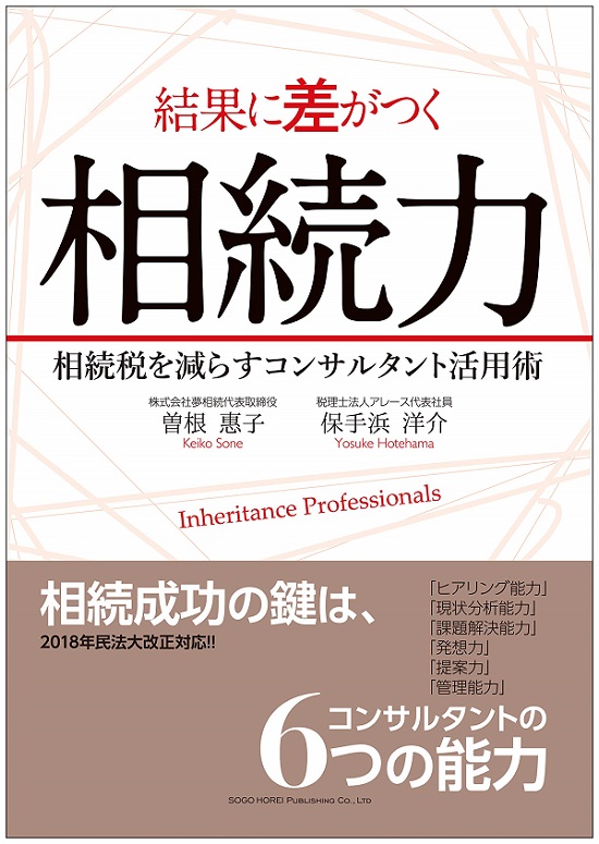 『結果に差がつく相続力 相続税を減らすコンサルタント活用術』(曽根惠子著、保手浜洋介著、総合法令出版刊)は、主に資産家向けに相続の流れや不動産の節税対策について説明する一冊だが、不動産関連の相続は税理士でも弁護士でもなく、専門の「相続コンサルタント」に任せることをすすめている。