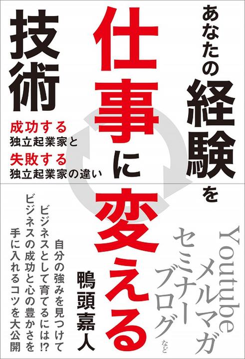 『あなたの経験を仕事に変える技術』(かも出版刊)は"炎の講演家"の呼び名を持つ鴨頭嘉人さんが、自分の強みや経験を活かせる仕事として「プロ講演家」「セミナー講師」で成功するための方法を伝授する一冊。