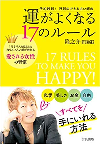 九星気学・タロットカード・手相の三つを組み合わせたオリジナルな占術を駆使し、これまでに1万5000人もの女性にアドバイスを送ってきた隆之介さんは著書『予約殺到! 行列のできる占い師の運がよくなる17のルール』(信長出版刊)の中で「占いだけでは人生は変わらない」としています。