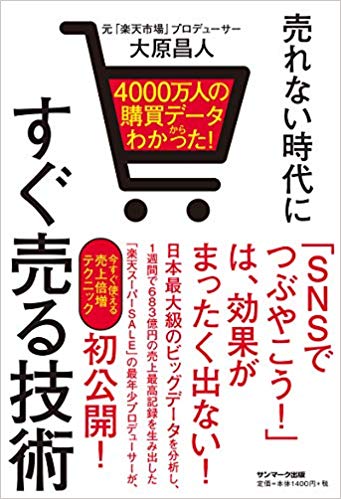 楽天市場のプロデューサーとして、4000万人分以上の購買データを分析し、モノを売るための企画を立ててきた大原昌人氏が、今すぐ使える売上倍増テクニックを紹介するのが、『4000万人の購買データからわかった! 売れない時代にすぐ売る技術』 (大原昌人著、サンマーク出版刊)だ。