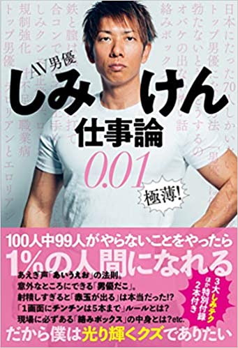 AV男優のトップランナー・しみけんさんが、ついに「仕事論」をタイトルにした本を出版した。その名も『AV男優しみけん仕事論0.01 極薄!』(扶桑社刊)だ。