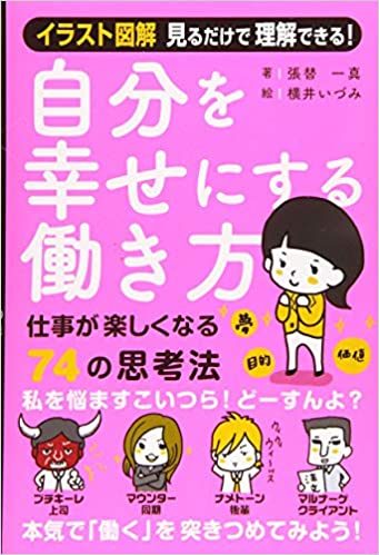 『自分を幸せにする働き方』 (張替一真著、横井いずみ絵、ぱる出版刊)では、仕事を少しでも楽しむために必要な「仕事をする為の目的」をつくるコツをイラストも交えながら紹介する。