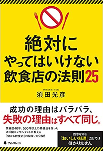 須田氏の著書『絶対にやってはいけない飲食店の法則25』(フォレスト出版刊)には、飲食店を開業する人が陥る「やってはいけないこと」がまだまだたくさん紹介されている。