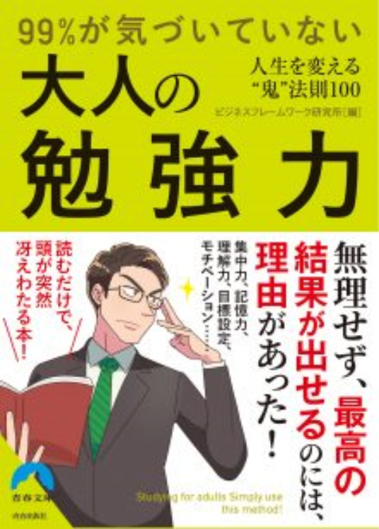 本書『99%が気づいていない大人の勉強力――人生を変える"鬼"法則100』(青春文庫)は、「勉強しよう!」と思い立った社会人に向けて「最少の努力で最高の結果を手にする」ためのポイントを徹底的にコーチする。目的の勉強をいきなり始める前に、まず勉強のコツを身につけたい人におすすめの一冊。