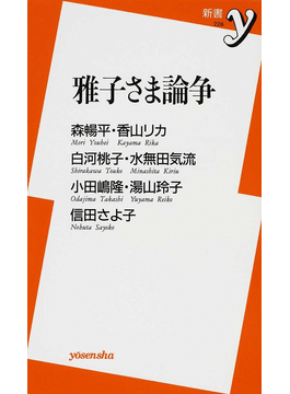 そんな論争があったことは知らなかった。『雅子さま論争』 (洋泉社新書y)。2009年の刊行だ。雅子さまは当時、心身の不調による療養が長引いていた。公務も欠席しがち。メディアのバッシングにさらされていた。本書はそんな状況を背景に出版されたもの。7人の筆者が、それぞれの専門分野や関心事をベースに独自の分析を展開している。最近BOOKウォッチで紹介した『近代皇室の社会史』(吉川弘文館)の関連本として手に取ってみたが、参考になることが多かった。