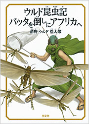 新書判では全身を緑色の衣装で覆ったバッタのような「怪人」が捕虫網を手に身構えている写真が表紙だったが、本書では絵になっている。なんとなく児童書を意識したつくりだ。帯には「ファーブルのような昆虫学者になるため、世界をバッタの害から救うため、アフリカに向かった若きハカセの冒険物語」とある。