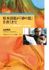 序章 松本清張と新聞小説の一九五〇年代 第一部 新聞小説家と私小説家 第1章 マスメディアの中の小説家――新聞小説家としての石川達三 第2章 新聞小説家の意見――石川達三の「自由」談義 第3章 ブームとなった私小説家――川崎長太郎の読者戦略 第二部 清張、新聞小説を書く 第1章 新聞小説第一作――「野盗伝奇」論 第2章 清張は新聞小説をどう書いたのか――「黒い風土」の執筆風景 第3章 ブロック紙の読者への戦略――新聞小説としての「黒い風土」 第三部 「砂の器」を読む 第1章 全国紙の新聞小説への挑戦――「砂の器」のたくらみ 第2章 <眼>から<耳>へ――「砂の器」を聴く 第3章 「砂の器」以降の清張、あるいは新聞小説についての覚書