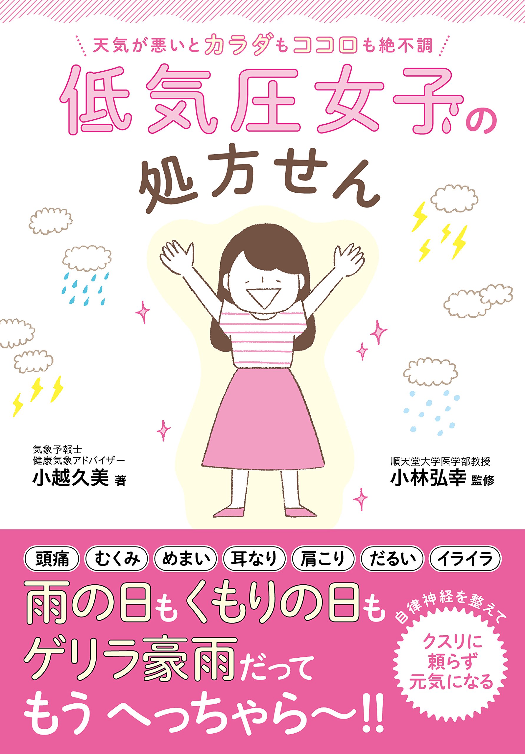 『低気圧女子の処方せん 天気が悪いとカラダもココロも絶不調』(小越久美著、小林弘幸監修、セブン&アイ出版刊)は、天気による体の不調に悩まされる女子を「低気圧女子」と名付け、 気象のプロである気象予報士と自律神経研究の第一人者が原因と改善策を紹介する一冊です。