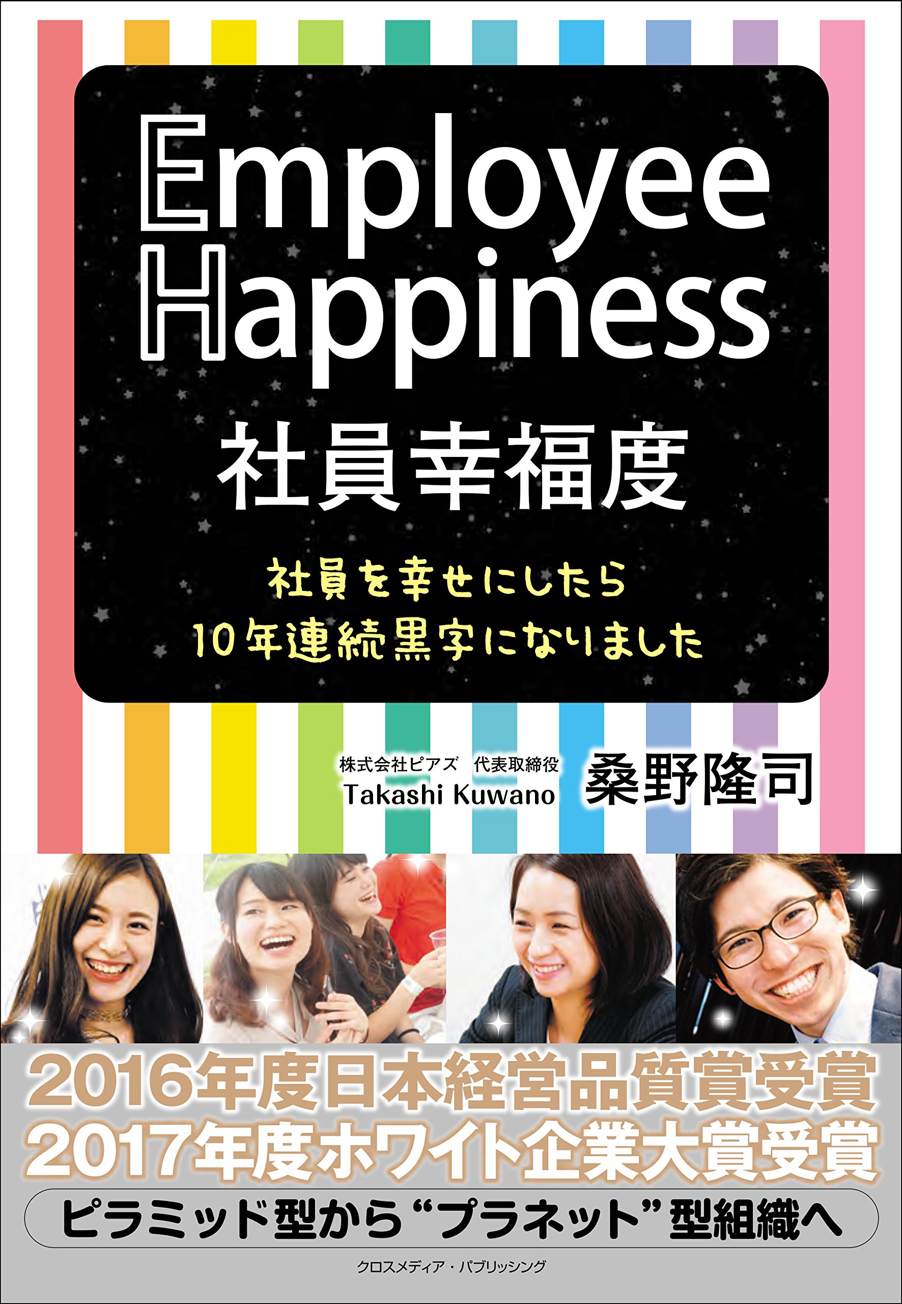 ピアズの代表取締役・桑野隆司氏が執筆した『社員幸福度 Employee Happiness 社員を幸せにしたら10年連続黒字になりました』(クロスメディア・パブリッシング刊)は、ES(従業員満足度)/EH(社員幸福度)理論を軸に「社員を幸せにするためには何が必要か?」「それが企業にどんな利益をもたらすのか?」などを解説した一冊だ。