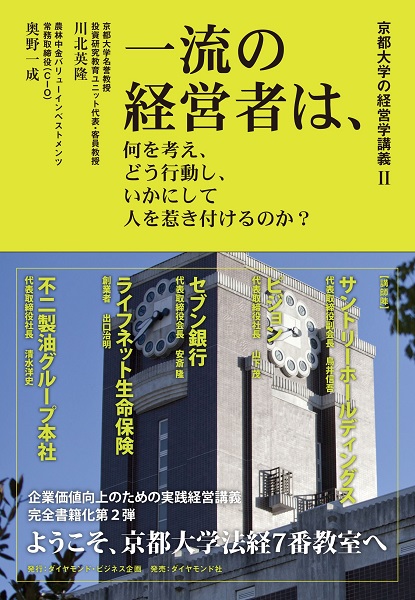 本講義を書籍化したのが『京都大学の経営学講義II 一流の経営者は、何を考え、どう行動し、いかにして人を惹き付けるのか?』(川北英隆、奥野一成編著、ダイヤモンド社刊)だ。本書はシリーズ書籍となっており、2016年度の講義は『京都大学の経営学講義 いま日本を代表する経営者が考えていること』(川北英隆、奥野一成編著、ダイヤモンド社刊)に収録されている。