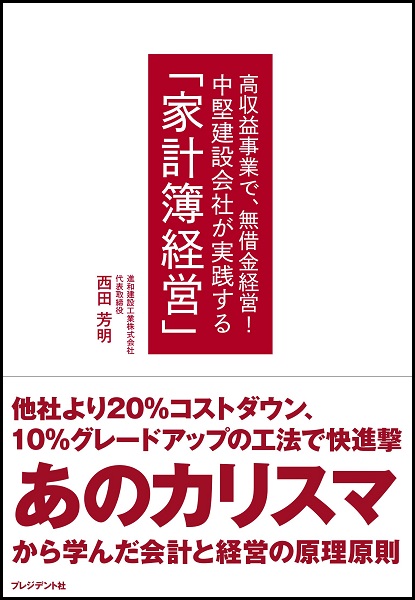 今回は『中堅建設会社が実践する 「家計簿経営」』(プレジデント社刊)の著者で同社社長の西田芳明氏にインタビュー。成功を支える自身の経営手法と哲学について語っていただいた。