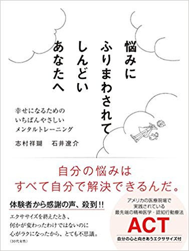 志村さんの著書『悩みにふりまわされてしんどいあなたへ』にはこのACTの考えをベースにした心のエクササイズがたくさん紹介されています。最近心がお疲れ気味の人は試してみてはいかがでしょうか。